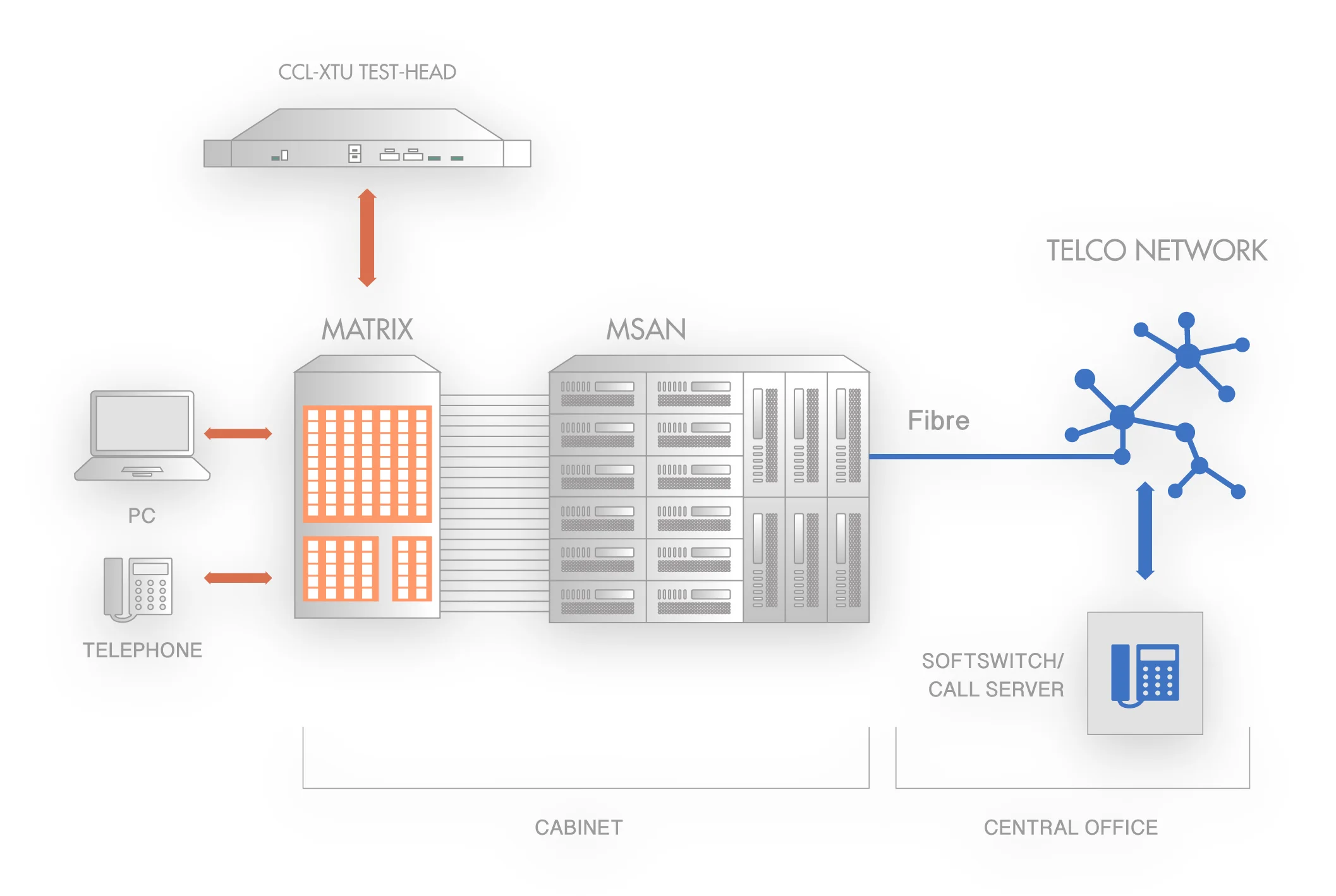 The CCL-XTU is a low-cost, power-efficient, high performance voice and Digital Subscriber Line (xDSL) test head designed both for central office and street-cabinet operation.